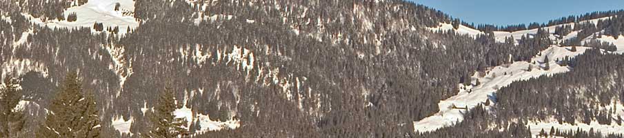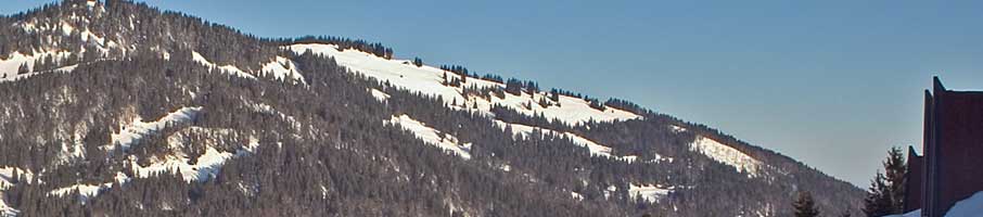 Beschreibung: Der Blick reicht vom Allgäuer Berghof über das Gunzesrieder Tal auf die Nagelfluhkette. Die Sonne steht jetzt schon einiges Höher als im vorherigen Bild. Der Schatten im Wald stammt vom Hotel. Am Ossi-Reichert-Lift kommen so langsam die ersten Skifahrer an.