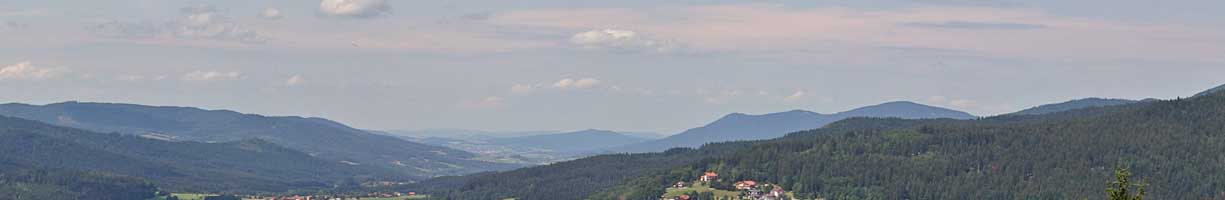 Der Blick von der Mittelstation der Silberberg Bergbahn auf Bodenmais. Der Silberberg ist einfach mit der Silberbergbahn zu ersteigen. An der Mittelstation befindet sich ein historischen Bergwerk.